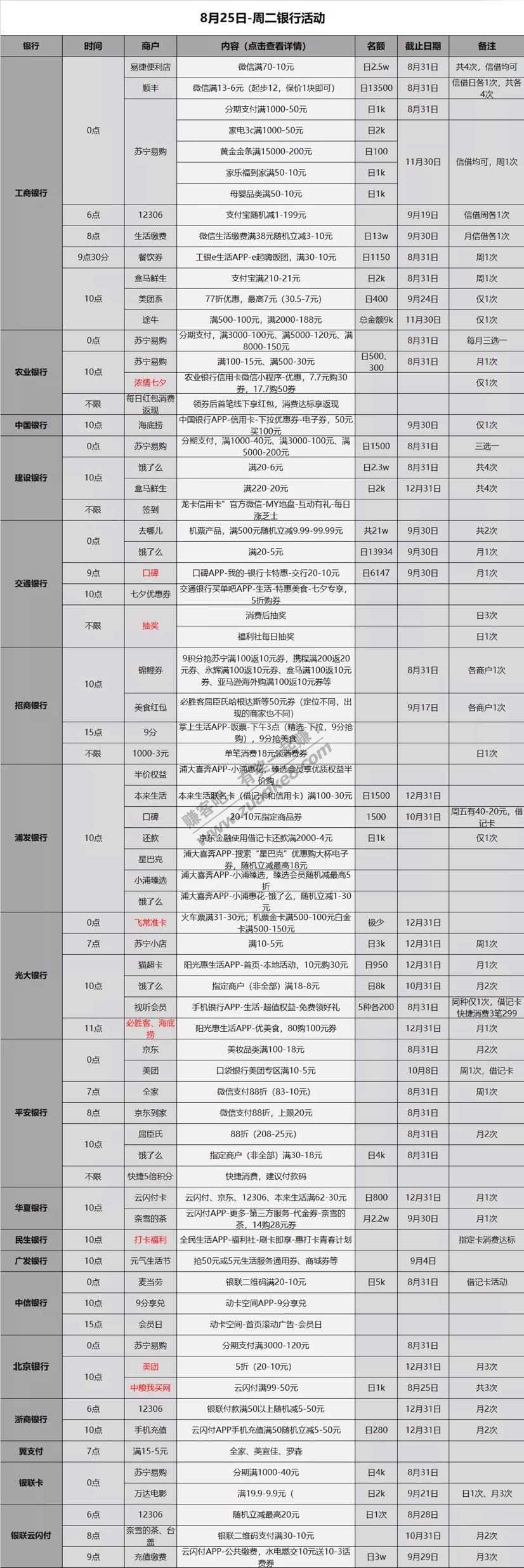 8.25各大银行薅羊毛活动