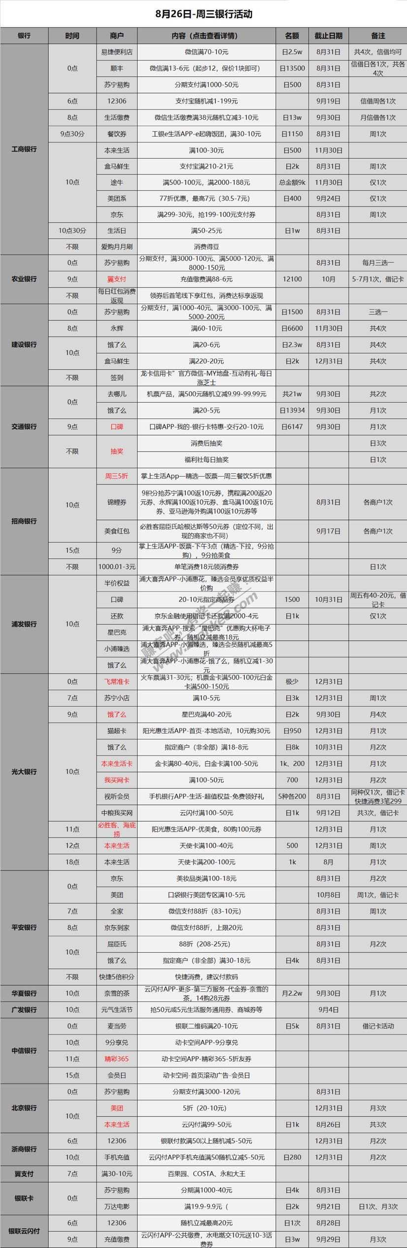 8.26各大银行薅羊毛活动