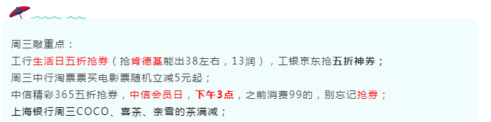 8月26号周三,银行活动汇总,8月最后一个周三,工行生活日五折抢券,中信精彩365五折