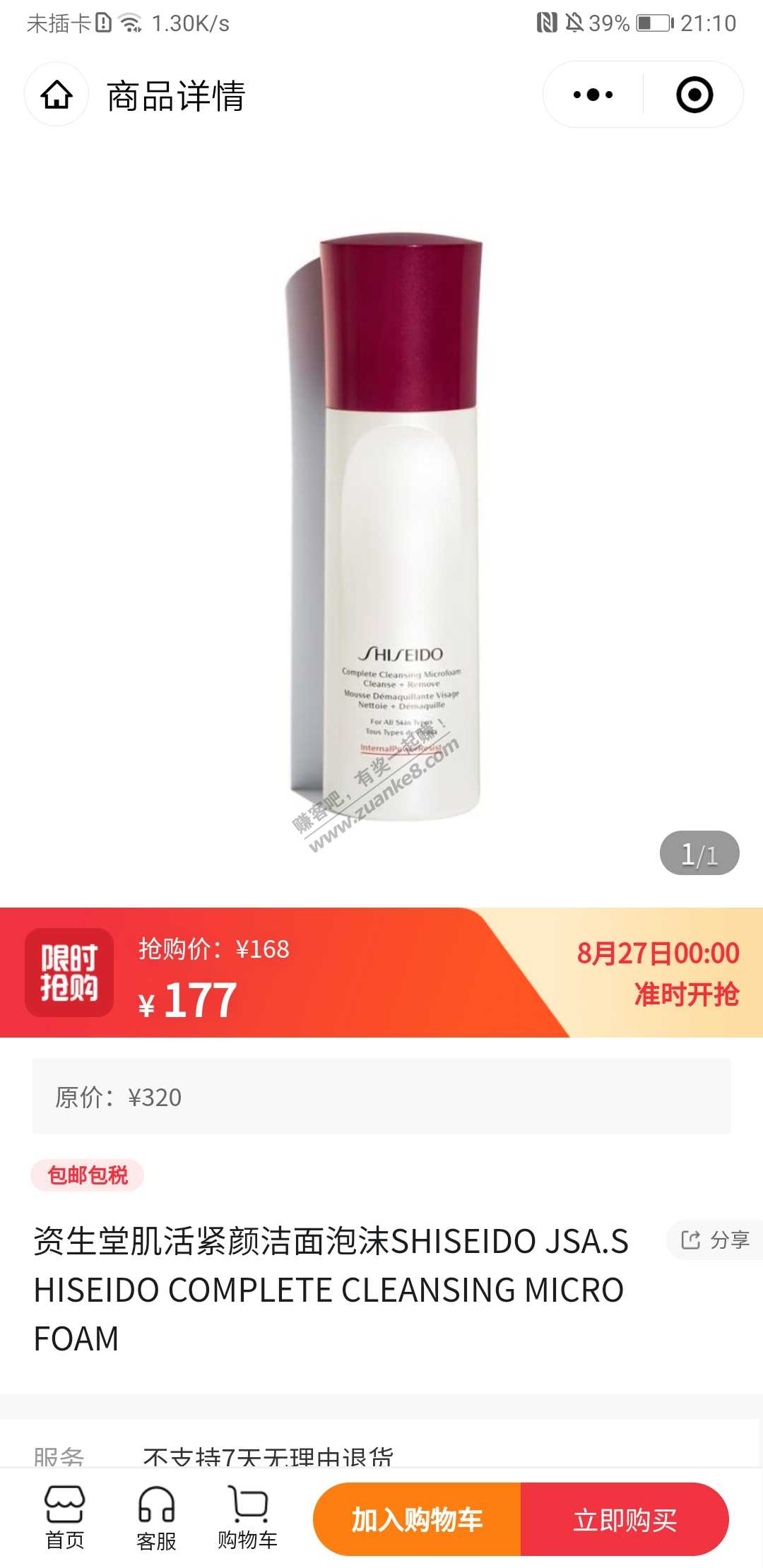 中免商城秒杀,资生堂洁面泡沫送女友 先扫码小程序搜索资生堂洁面下单