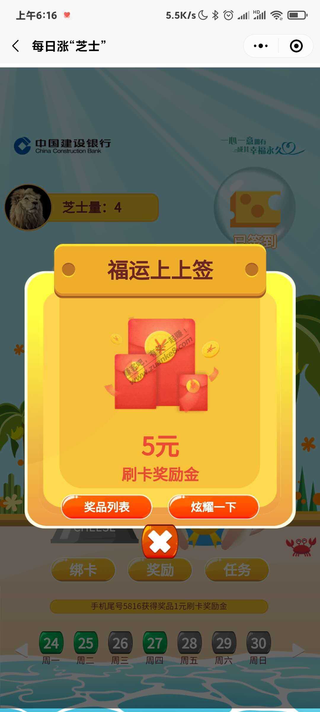 建.行 好运连连抽 有水哈