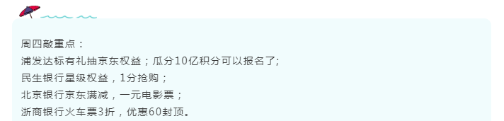 8月27号周四,银行活动汇总,敲重点:浦发达标有礼抽京东权益;瓜分10亿积分报名等