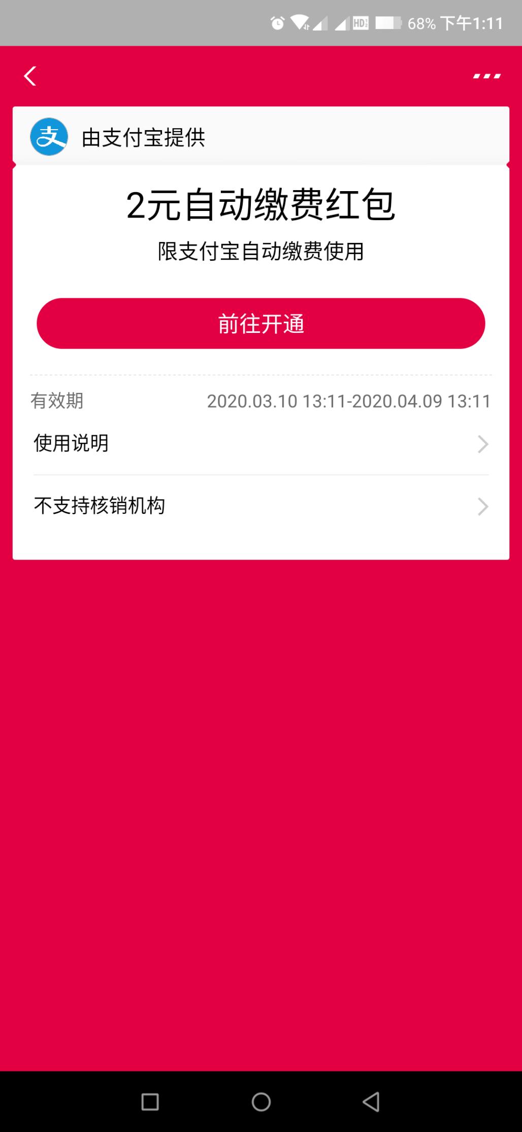 支付宝2元生活自动缴费红包