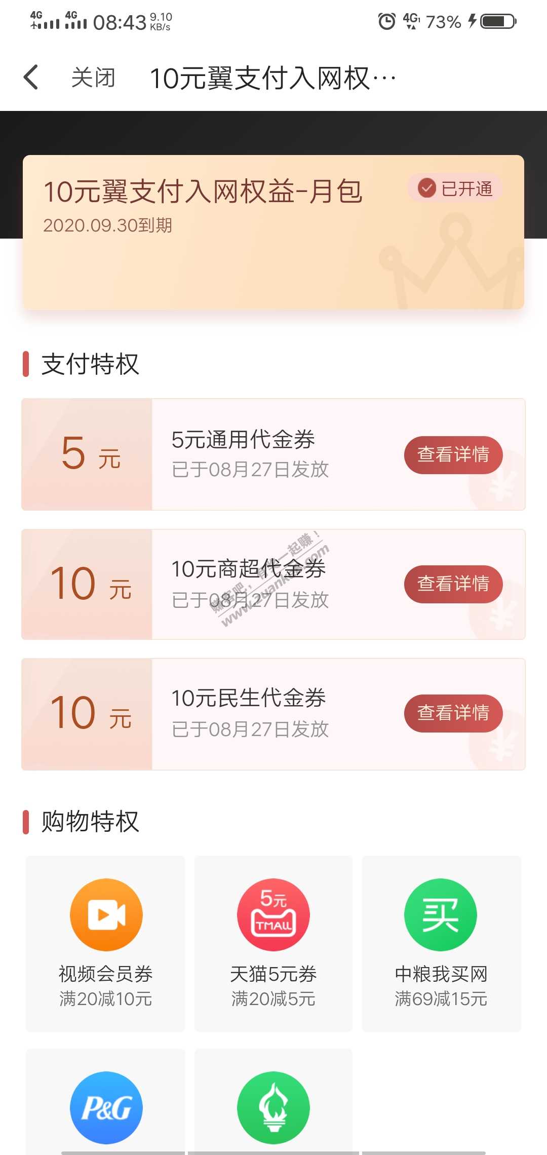 翼支付10元话费开通60元权益,