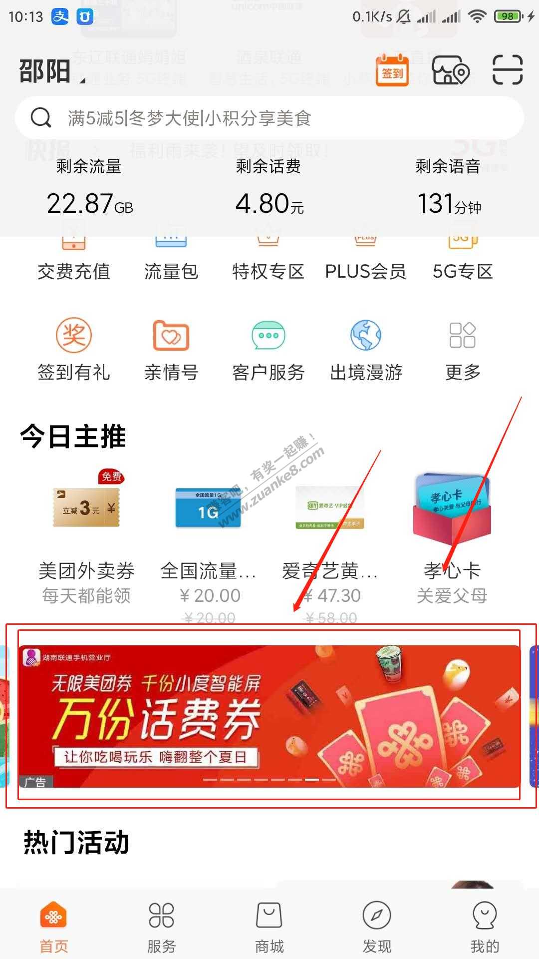 不知道是不是首发 湖南联通手机营业厅 下拉中间滚动的 无限美团券,还有小度在家,脸黑 只重了1E卡 1话费券 自测能不能啦别的号吧