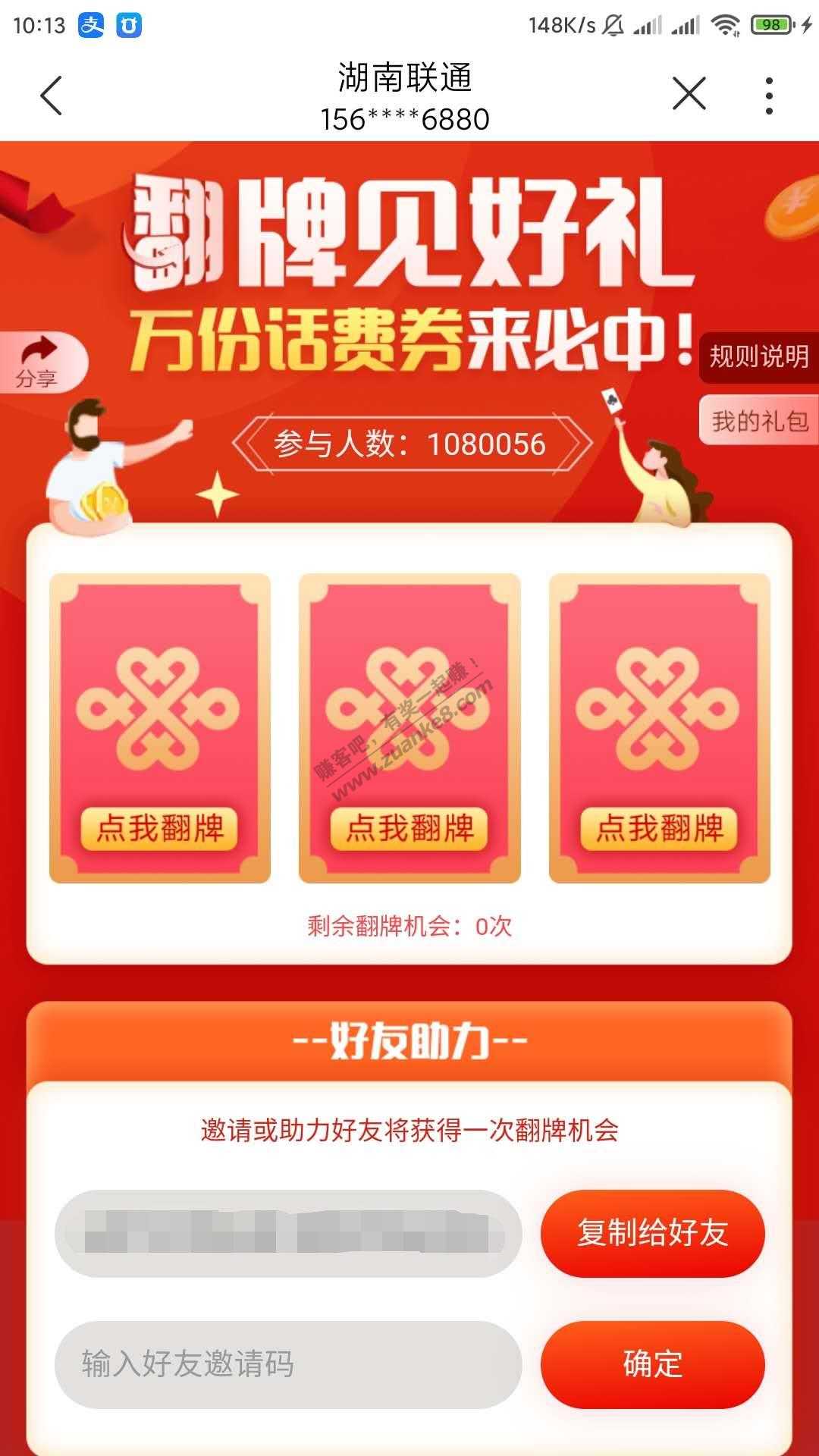 湖南联通手厅抽奖有水,其他地区自测