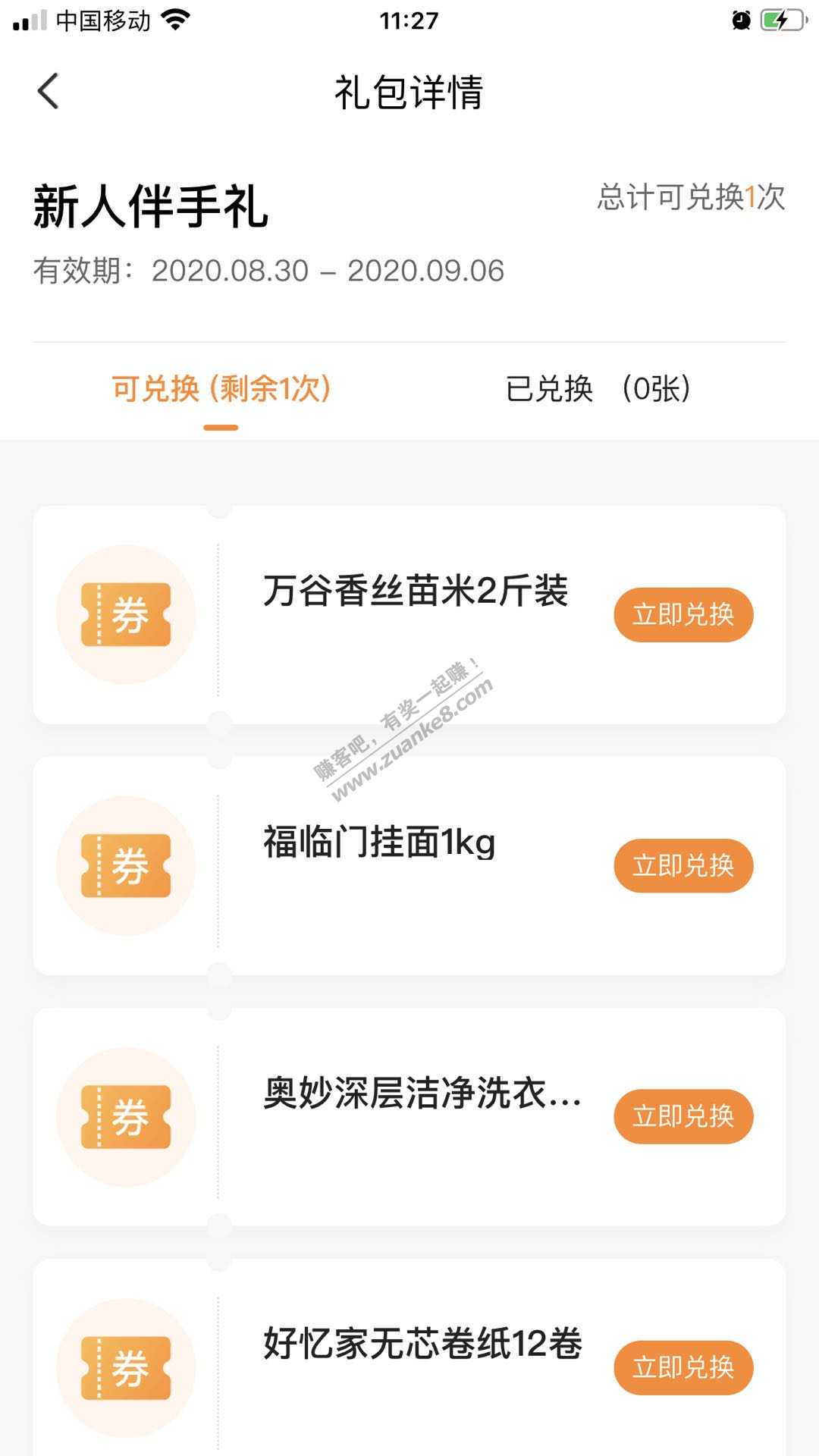 选择自己想要的,实物包邮,完全0撸,我兑换了大米,室友兑换了抽纸
