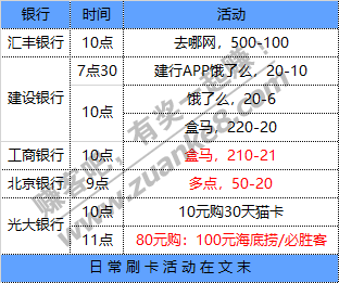 8月31号周一 各大银行活动优惠