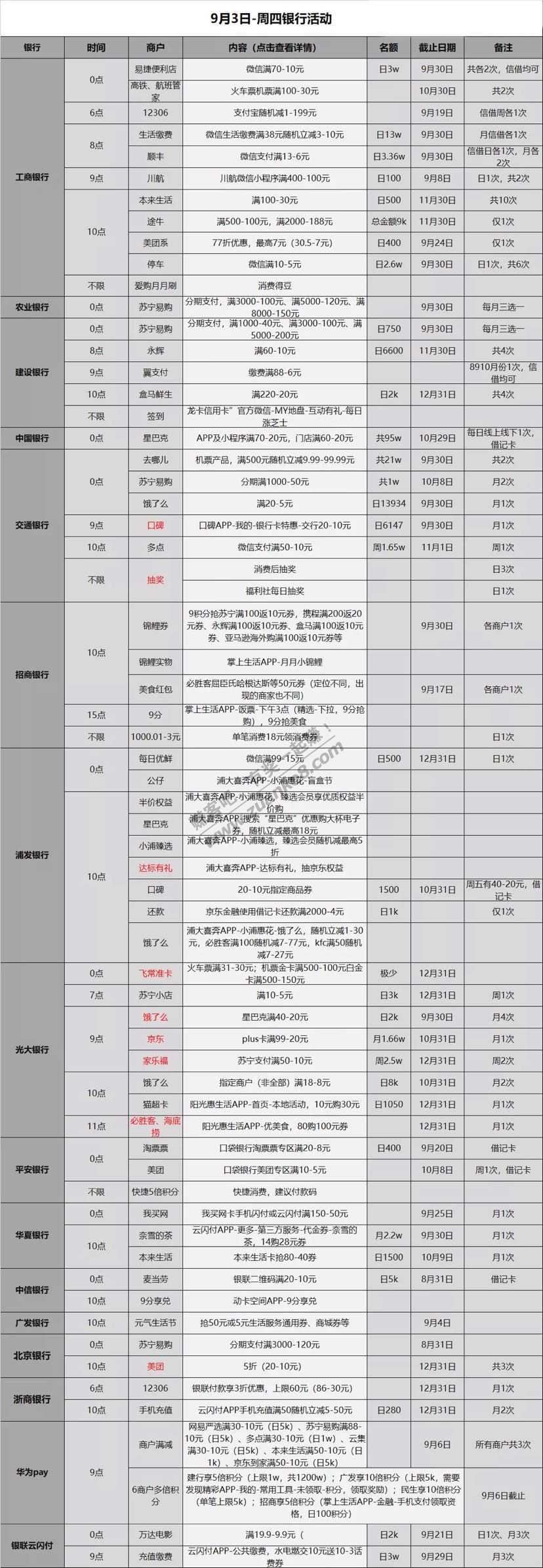8.31-9.6期间每日9点,指定银行使用华为Pay消费可享多倍积分