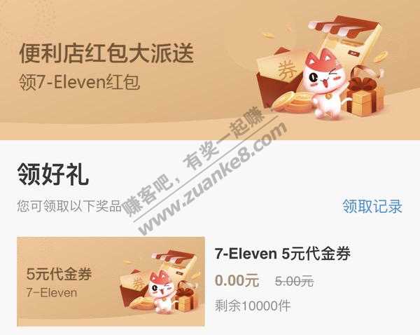 即日起至2020年9月30日,用户在活动页面可领取一张7-Eleven线下门店5元代金券,每人每天可享1次优惠,整个活动期间可领3次,活动期间优惠券每天限量10000张,先到先得。