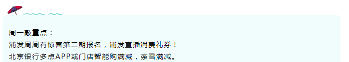 周一敲重点:浦发周周有惊喜第二期报名,浦发直播消费礼券!