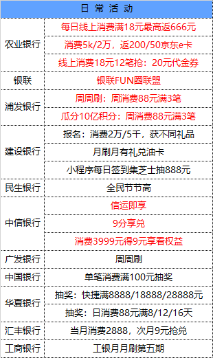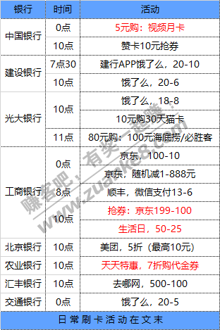 9月9号周三 各大银行活动优惠