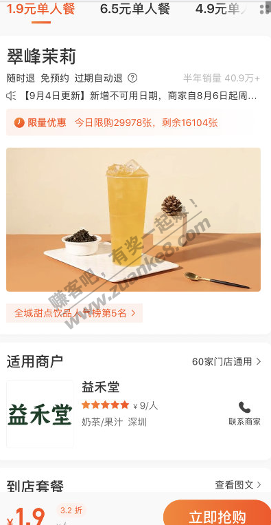 美团点评搜索益禾堂,1.9大杯