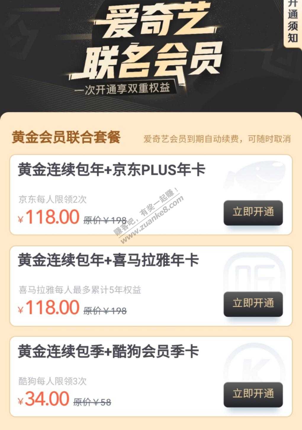 爱奇艺一年+京东plus 118 爱奇艺一年+喜马拉雅一年118
