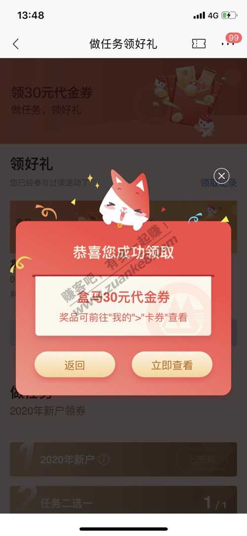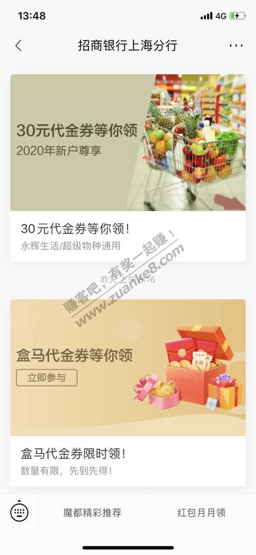 招行领盒马或者饿了么30券