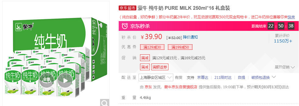 好价牛奶 蒙牛 不到1.4元一盒