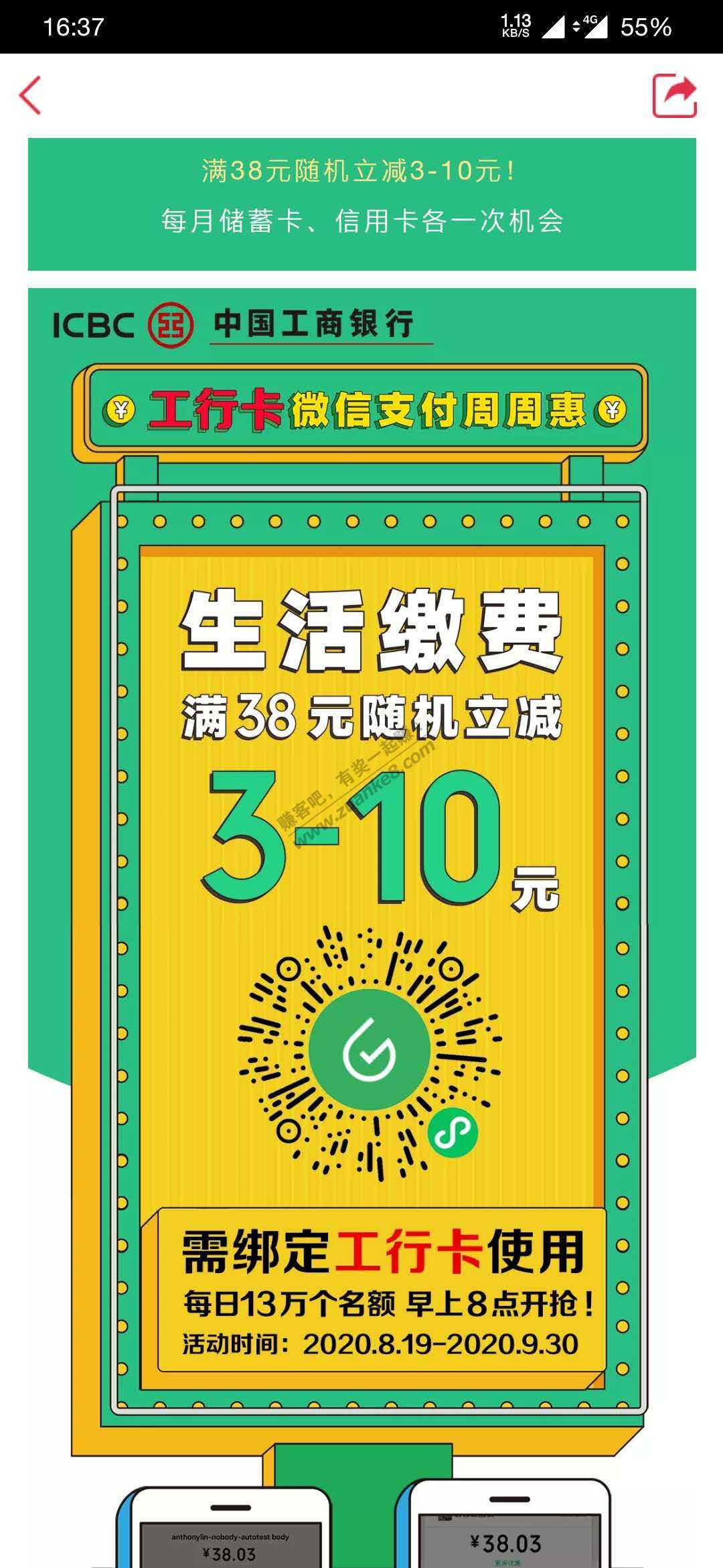 工行新绑卡的微信缴费活动