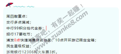 9月17日周四,银行活动汇总,敲重点!中行99积分抢代金券等