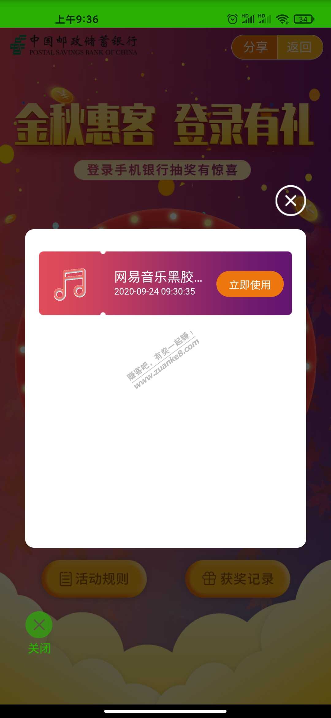 邮政储蓄app,生活==活动专区==金秋惠客第一个进去抽e卡