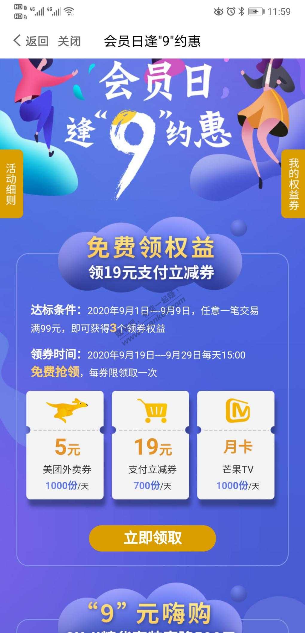 生活,9月会员日,1-9号消费过领支付卷等