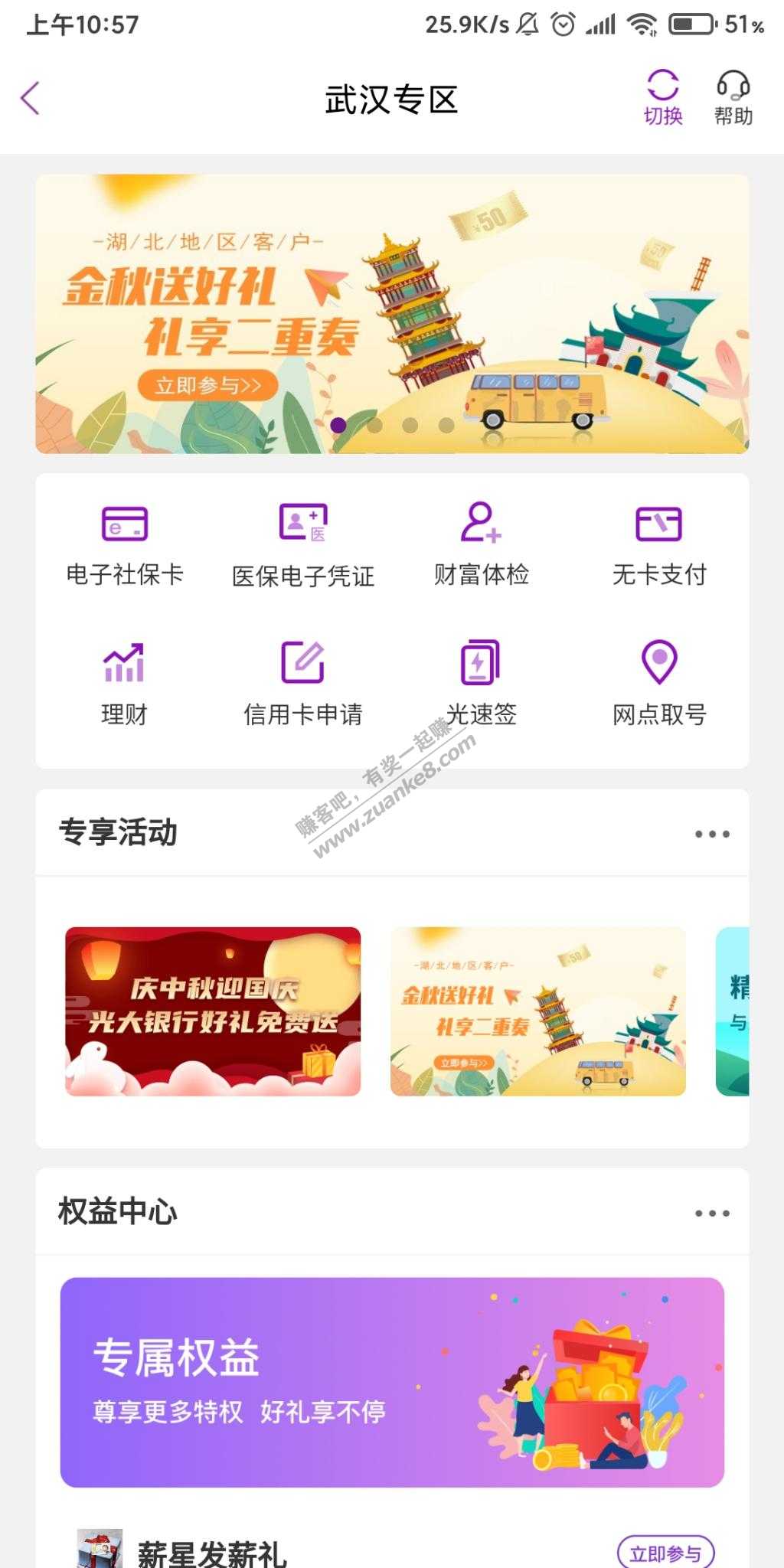 光大app-生活-城市服务,定位wh,专享活动庆中秋迎国庆。刚中5猫眼 优酷月卡。不限地区