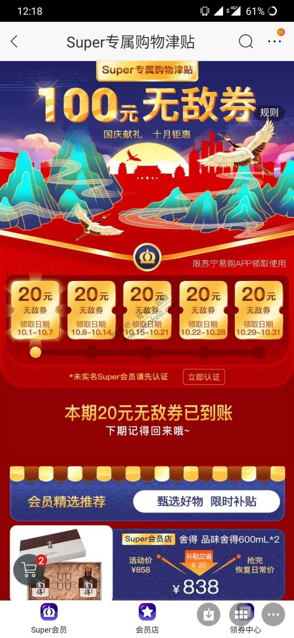 苏宁易购super会员无敌券大毛