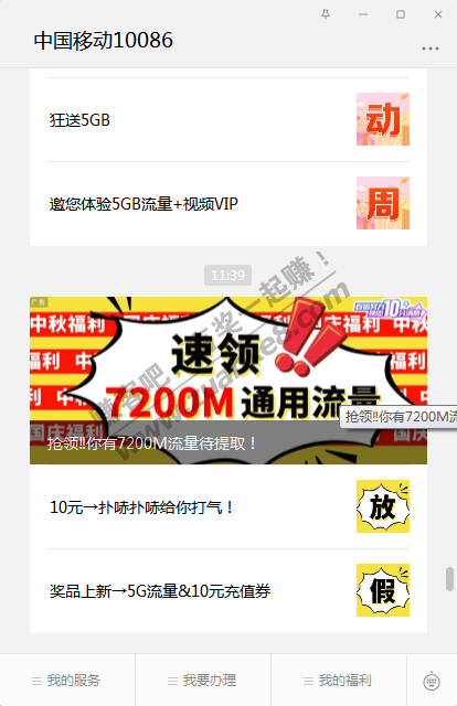 广东移动10086 公众号 领7200m流量