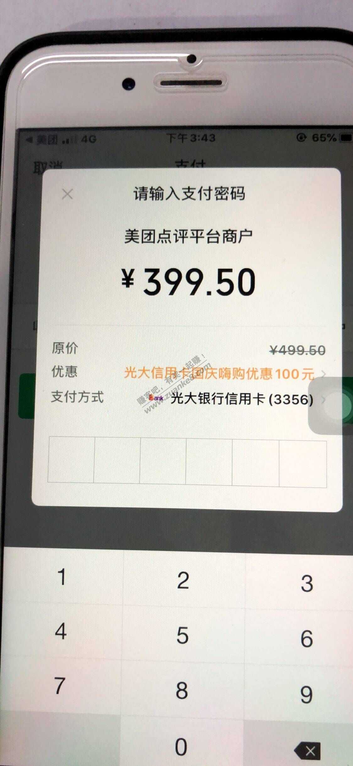美团app 充话费 500 选择微信支付 选光大xing/用卡 付款 秒减100 付款前可见,缺话费的抓紧上 充苏州移动的可以上