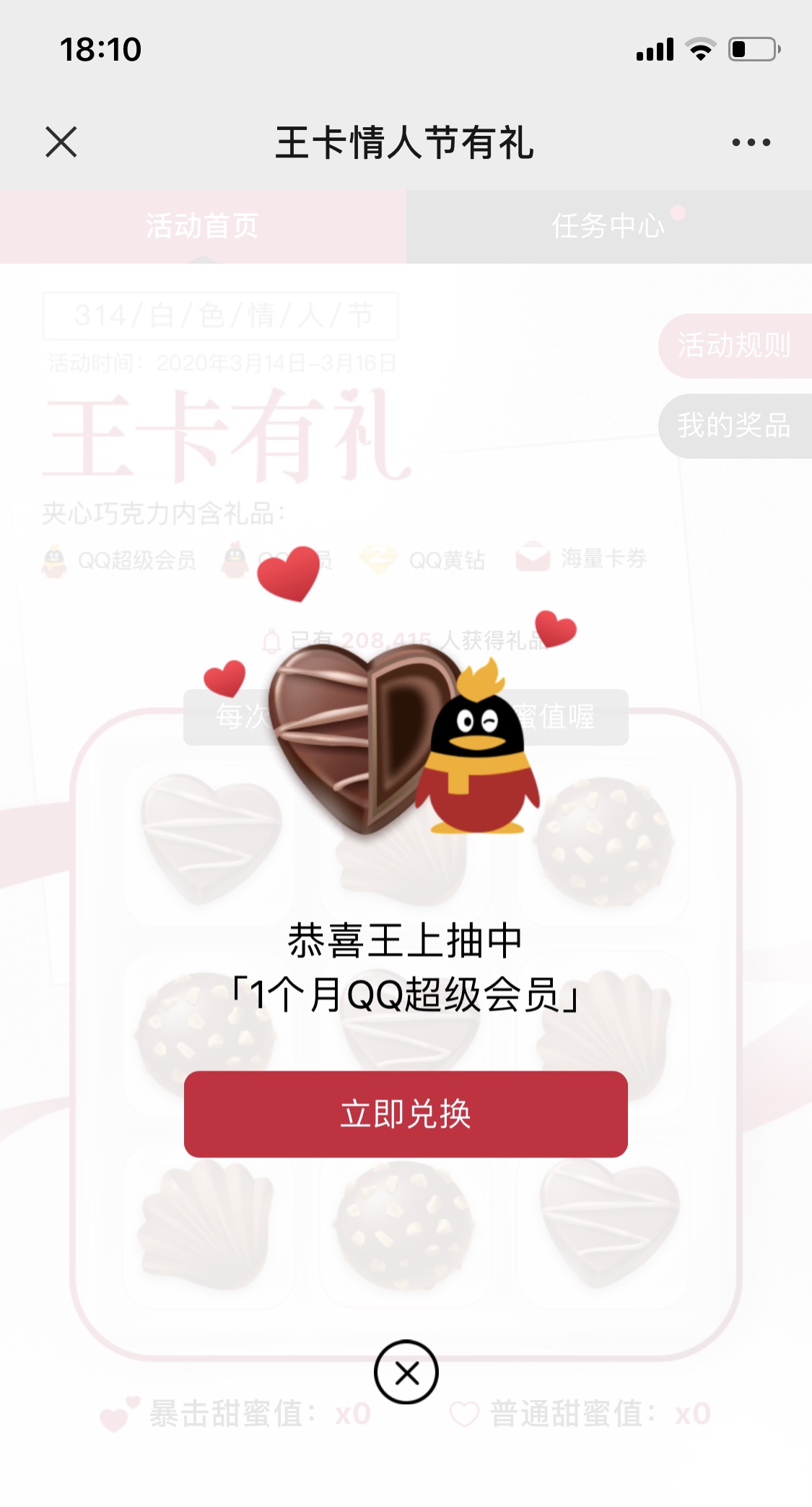 腾讯王卡白色情人节抽奖水