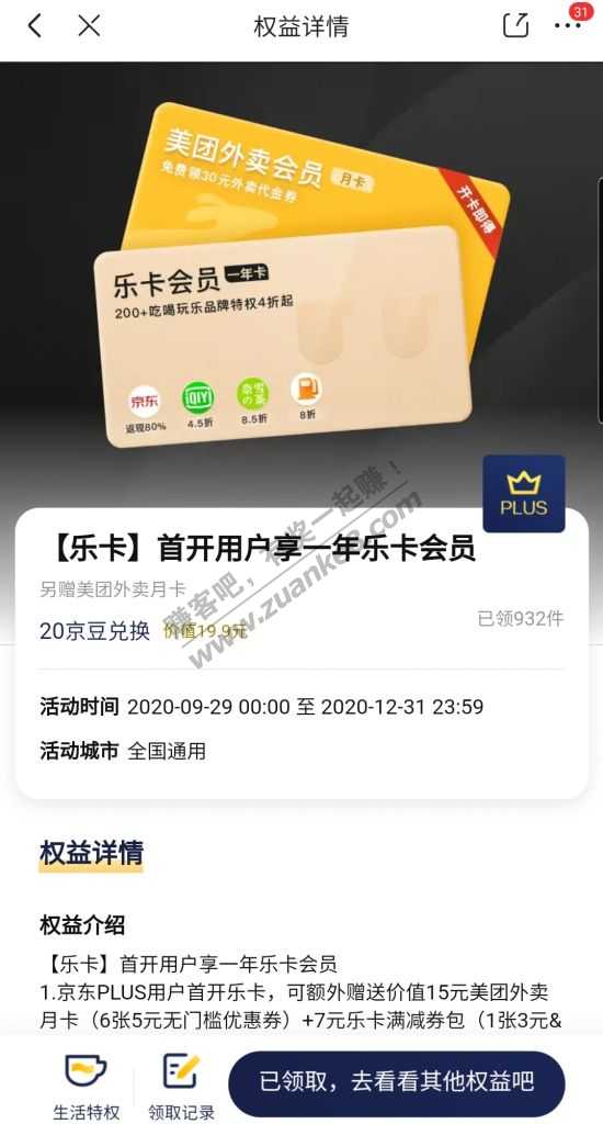 京东PLUS活动送一个月美团外卖会员