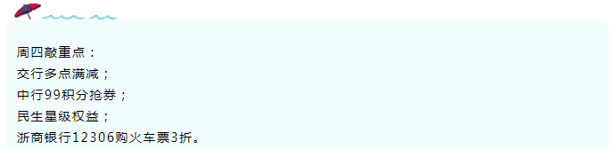 10月8日周四,银行活动汇总,敲重点!中行99积分抢券;民生星级权益;