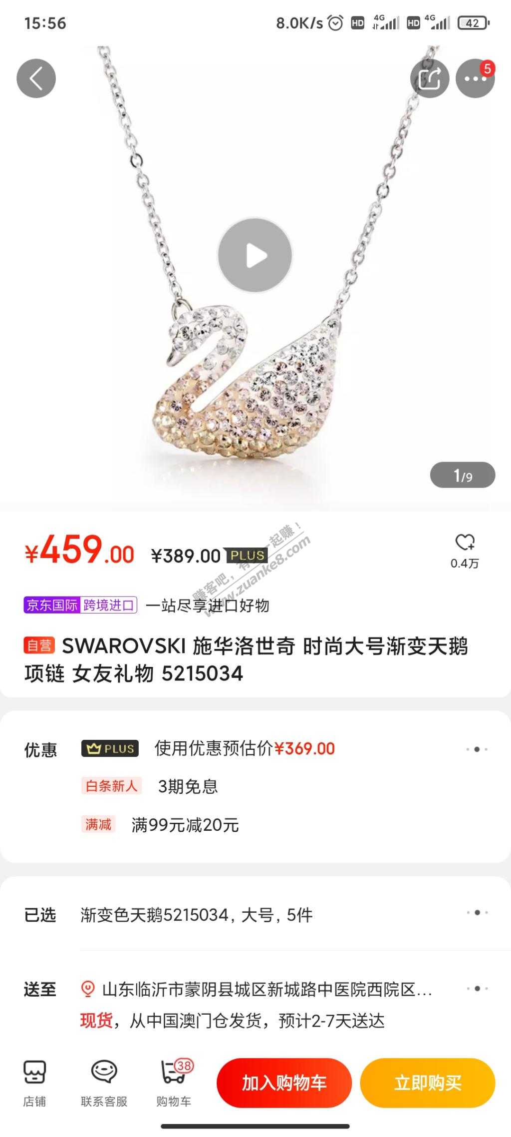 施华洛世奇5215034天鹅项链,385是车吗?