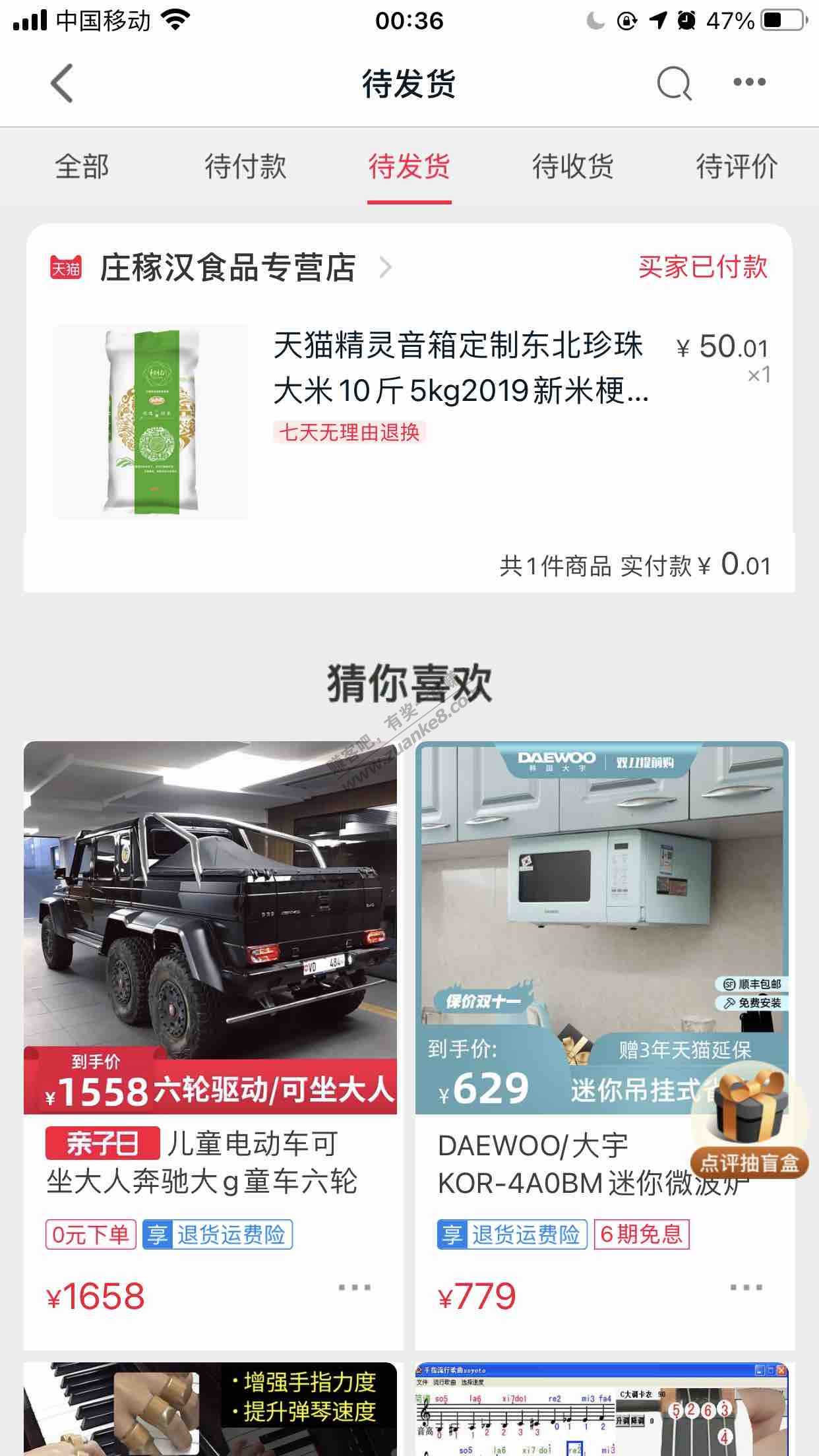 买了联通版天猫精灵的,50元的大米卷,打开绑定的淘宝卡卷就看到了,我的天猫精灵已经退货了,但是卡卷还在,可以0.1元买大米。快去看看吧