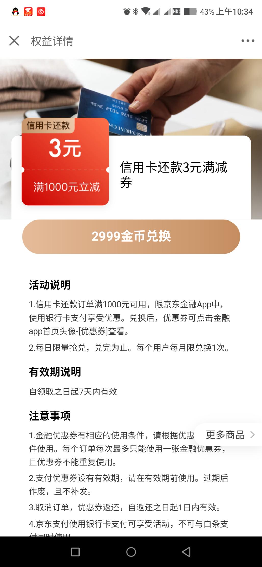 京东金融扫码2999金币直接兑换
