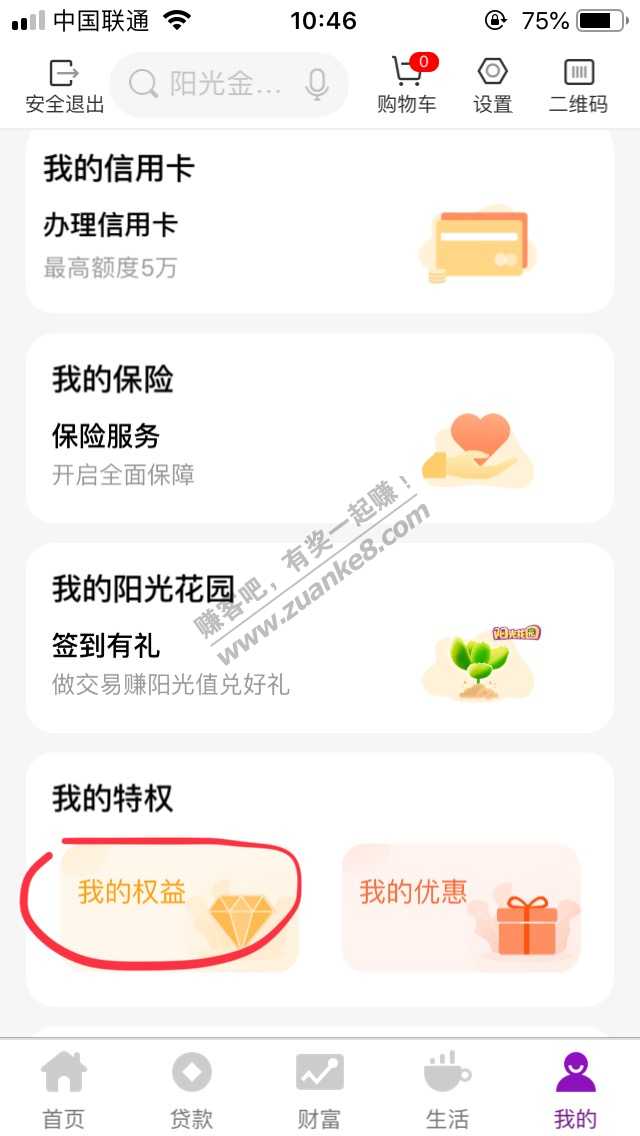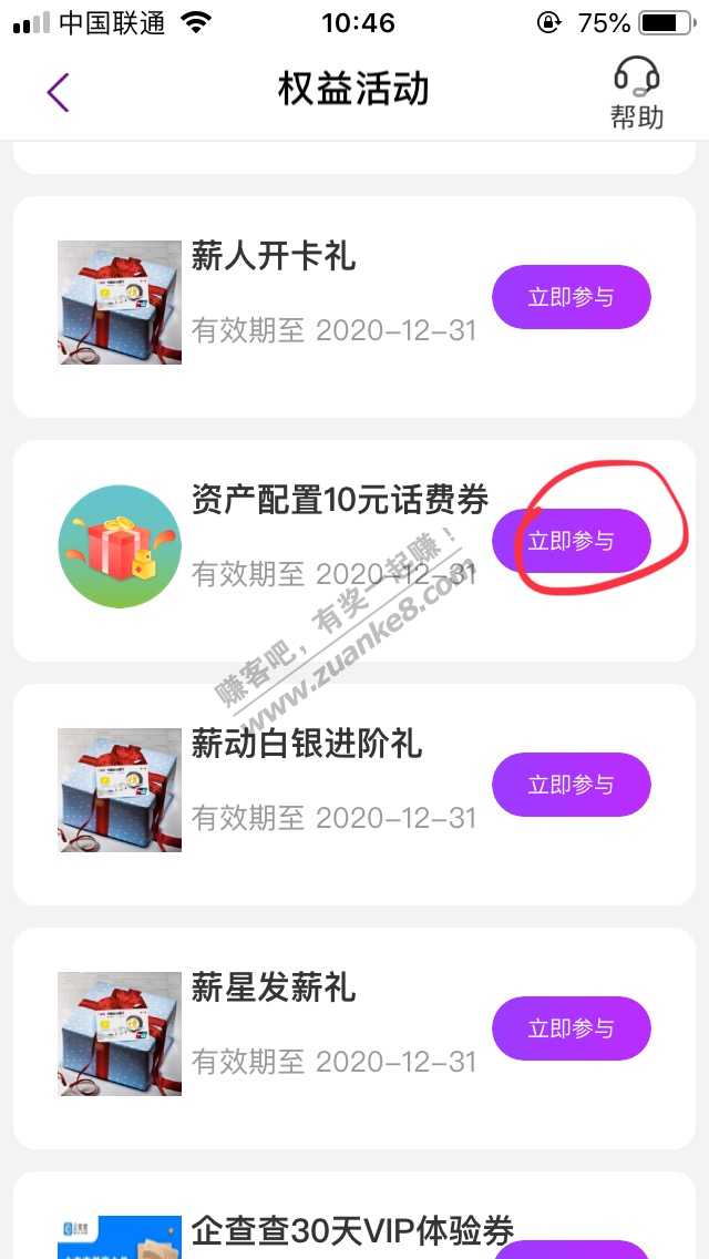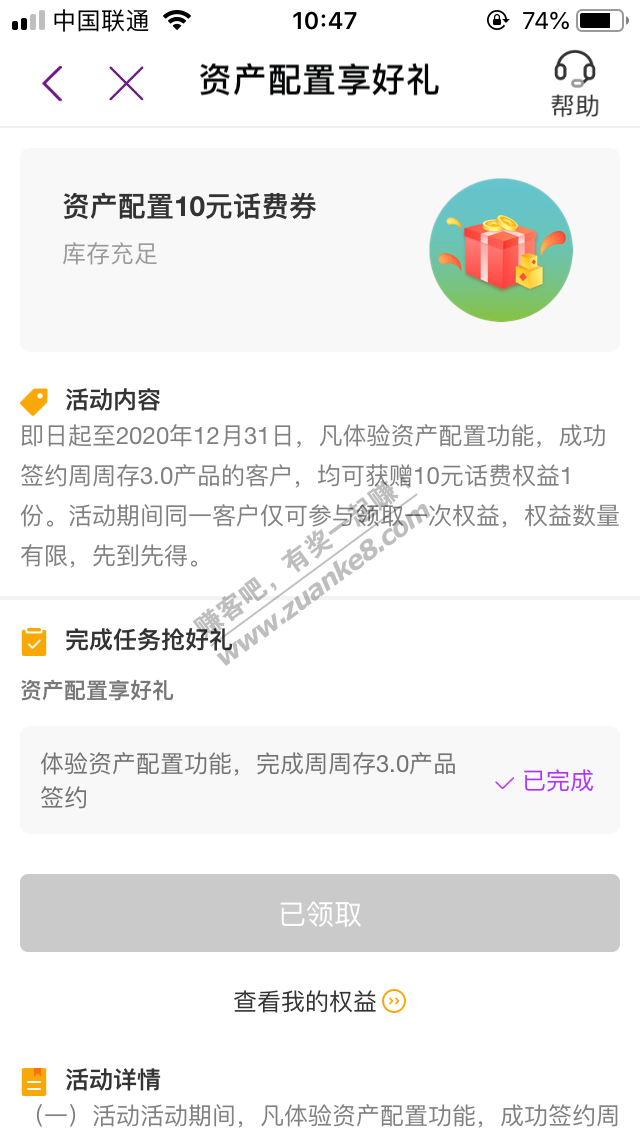 光大银行app-我的-我的权益-返回-资产配置10元话费券-立即参与