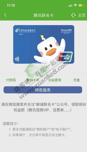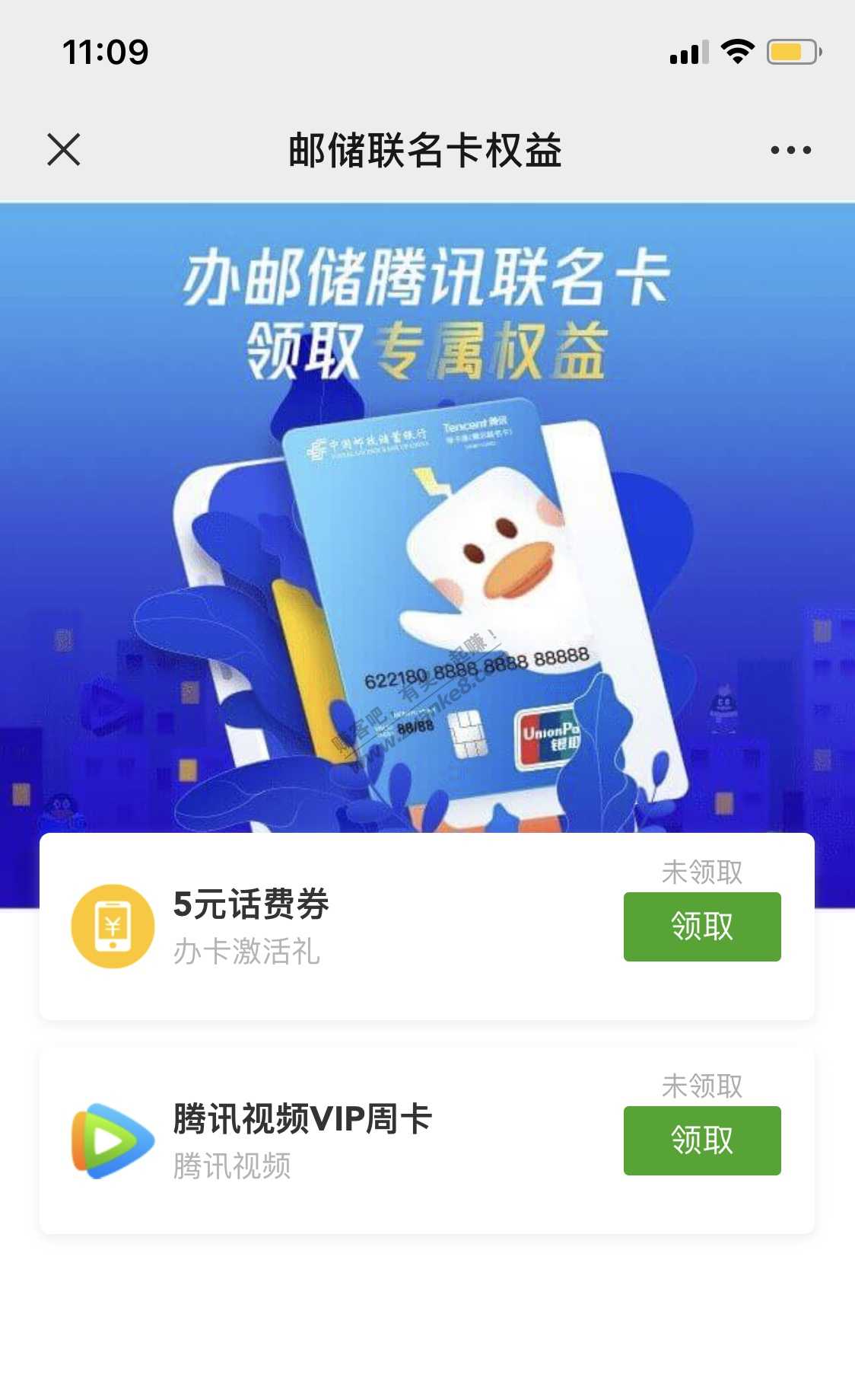 邮储银行新开腾讯联名卡二类卡,微信公众号送5元话费券,充值的时候选1-29金额充值6元,