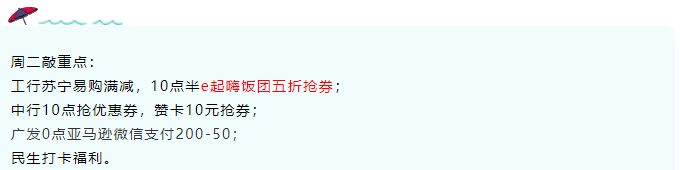 10月13日周二,银行活动汇总,敲重点!10点半e起嗨饭团五折抢券;
