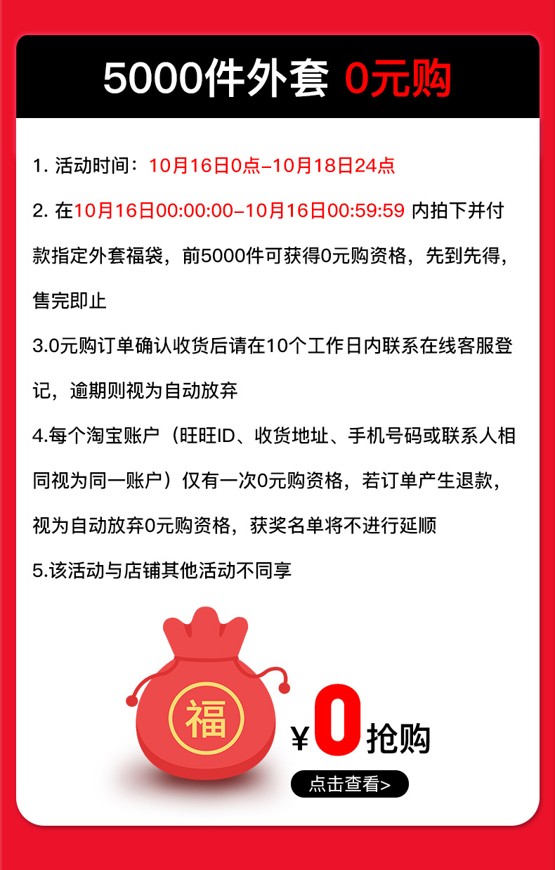 10月16日0点 A21免单外套 5000件