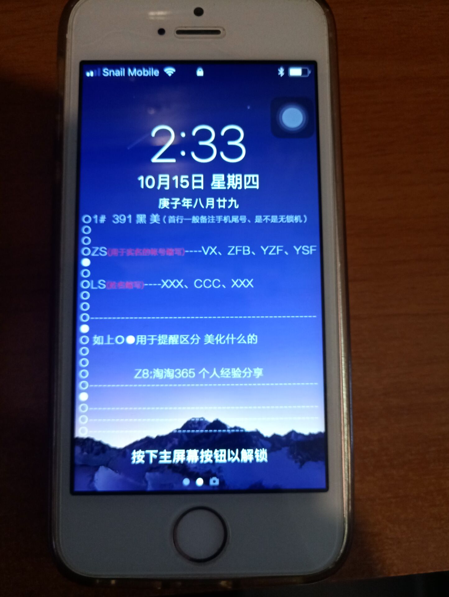 建议:设置“设定锁定屏幕”的壁纸如动画 这样进入手机后 不影响美观 不会被手机app遮挡 同时也方便你找对应号(水果手机支持抬起唤醒屏幕(无需解锁即可查看))