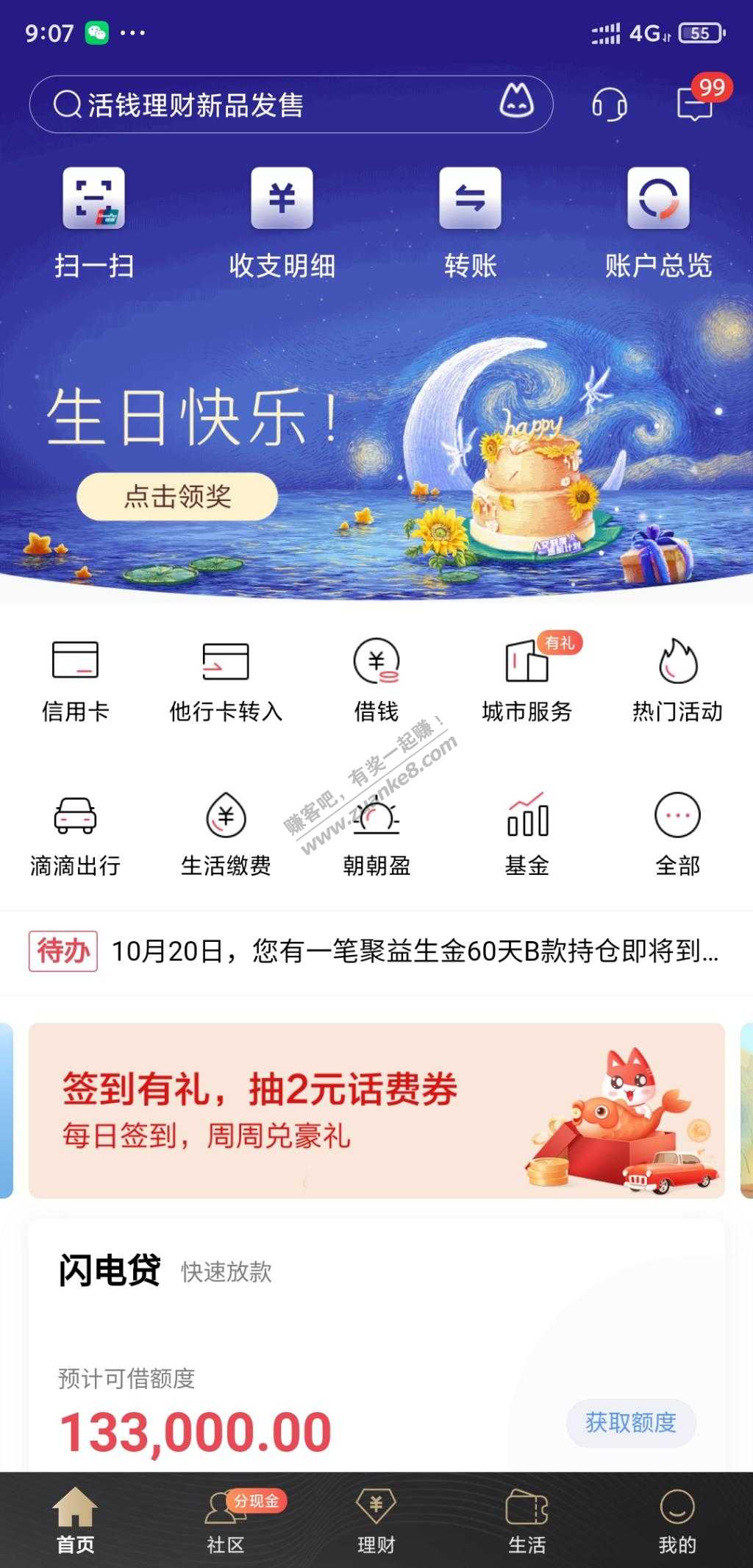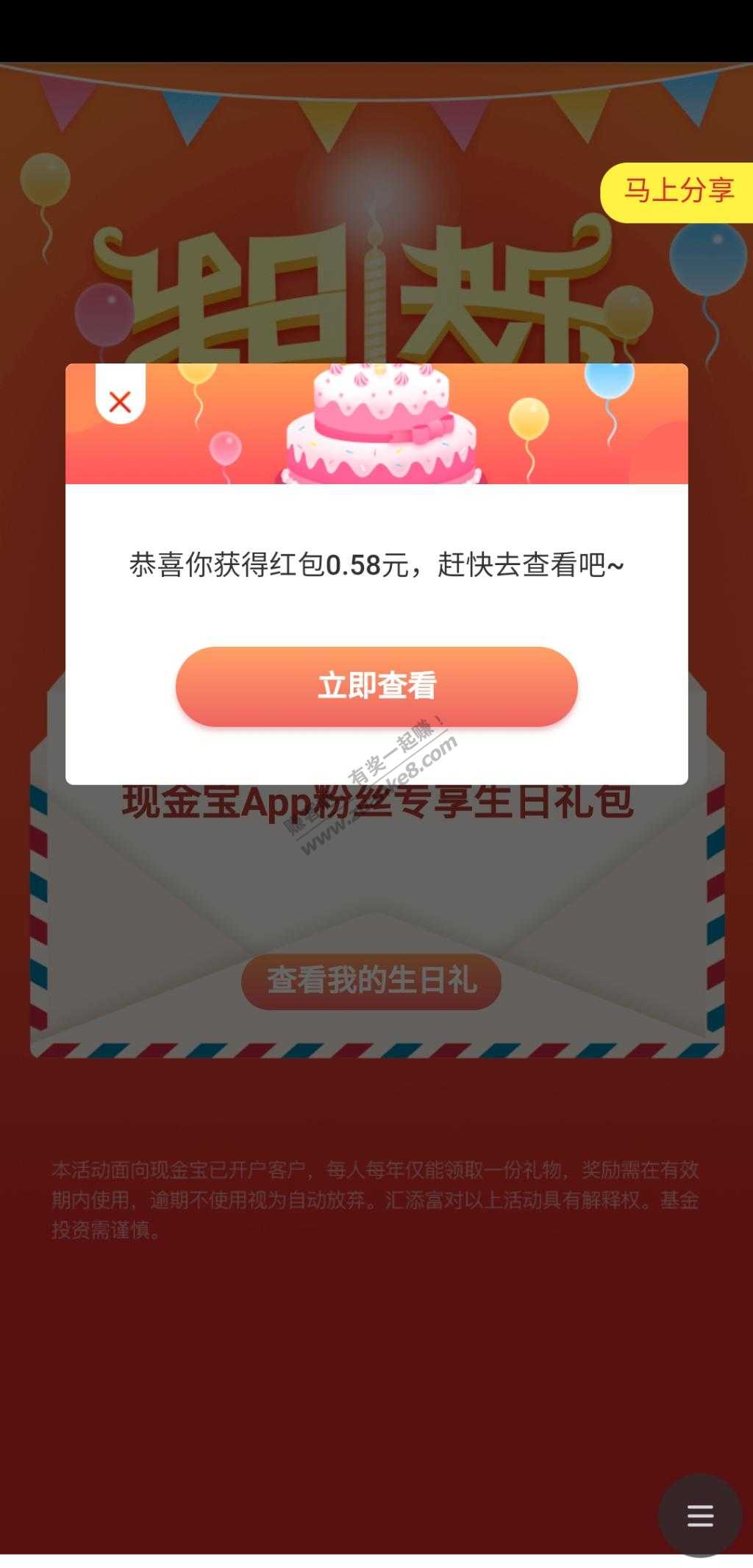 4、招商APP搜生日礼,抽奖抽到优酷周卡