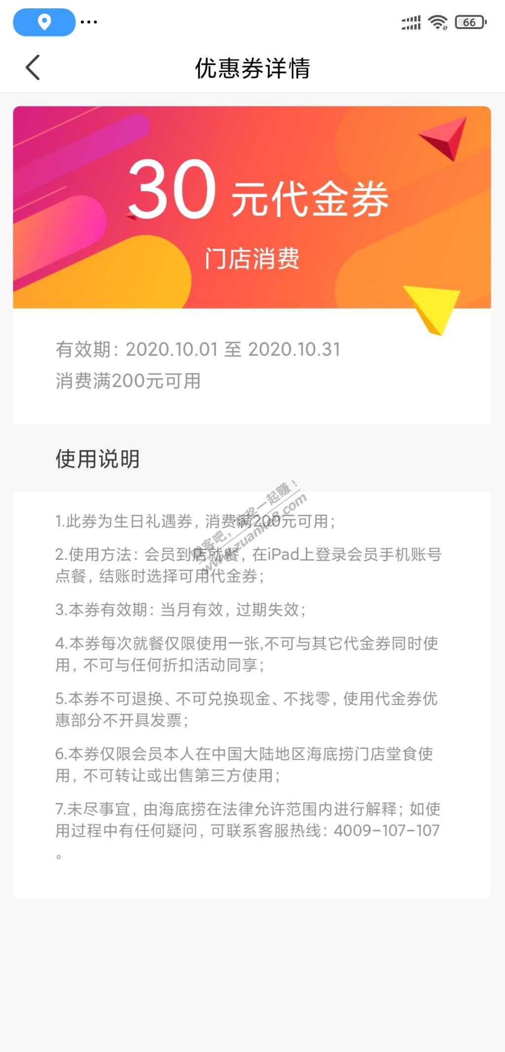 14、海底捞APP,领取200-30的代金券