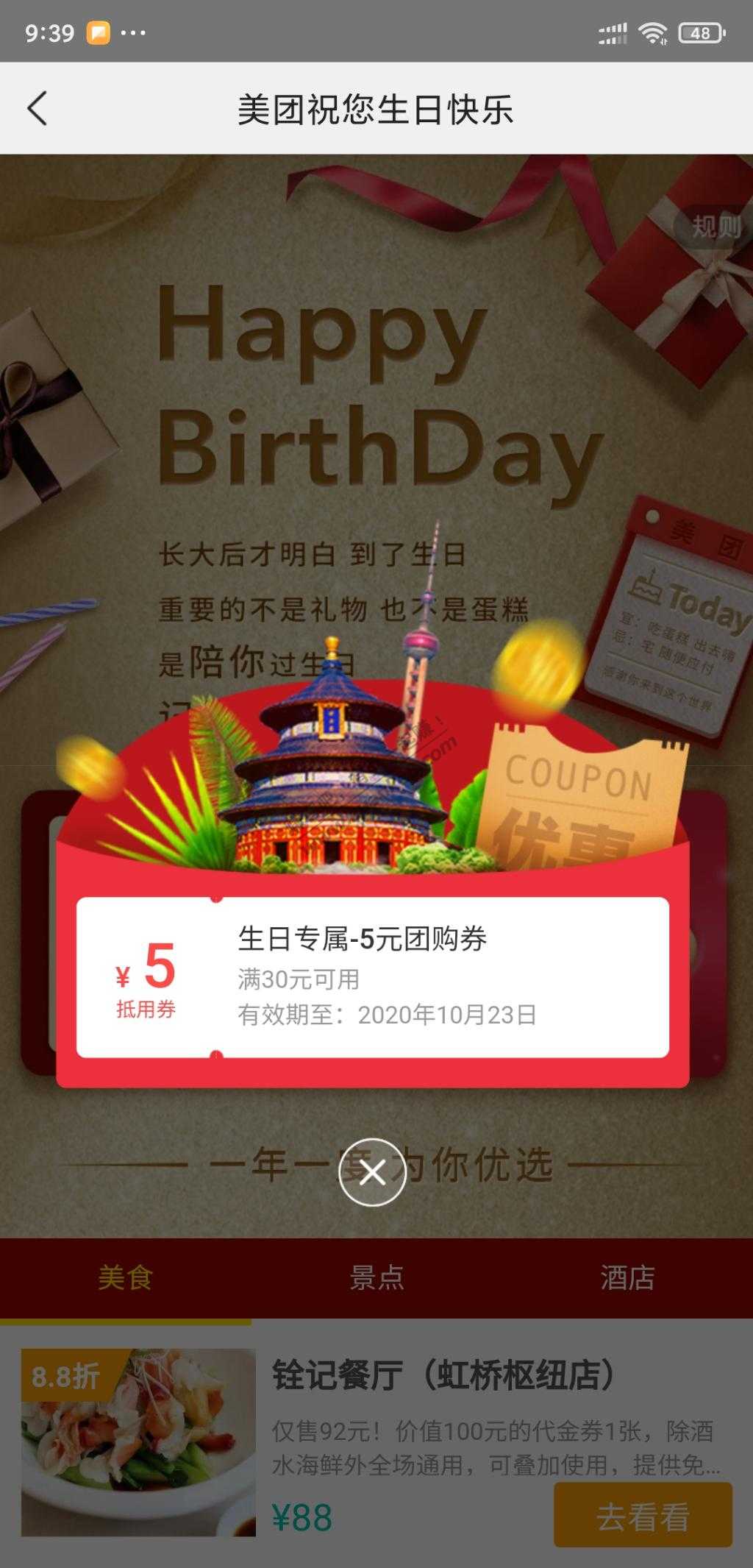 15、美团送了30-5的团购券,没卵用,可忽略,这个不说路径了