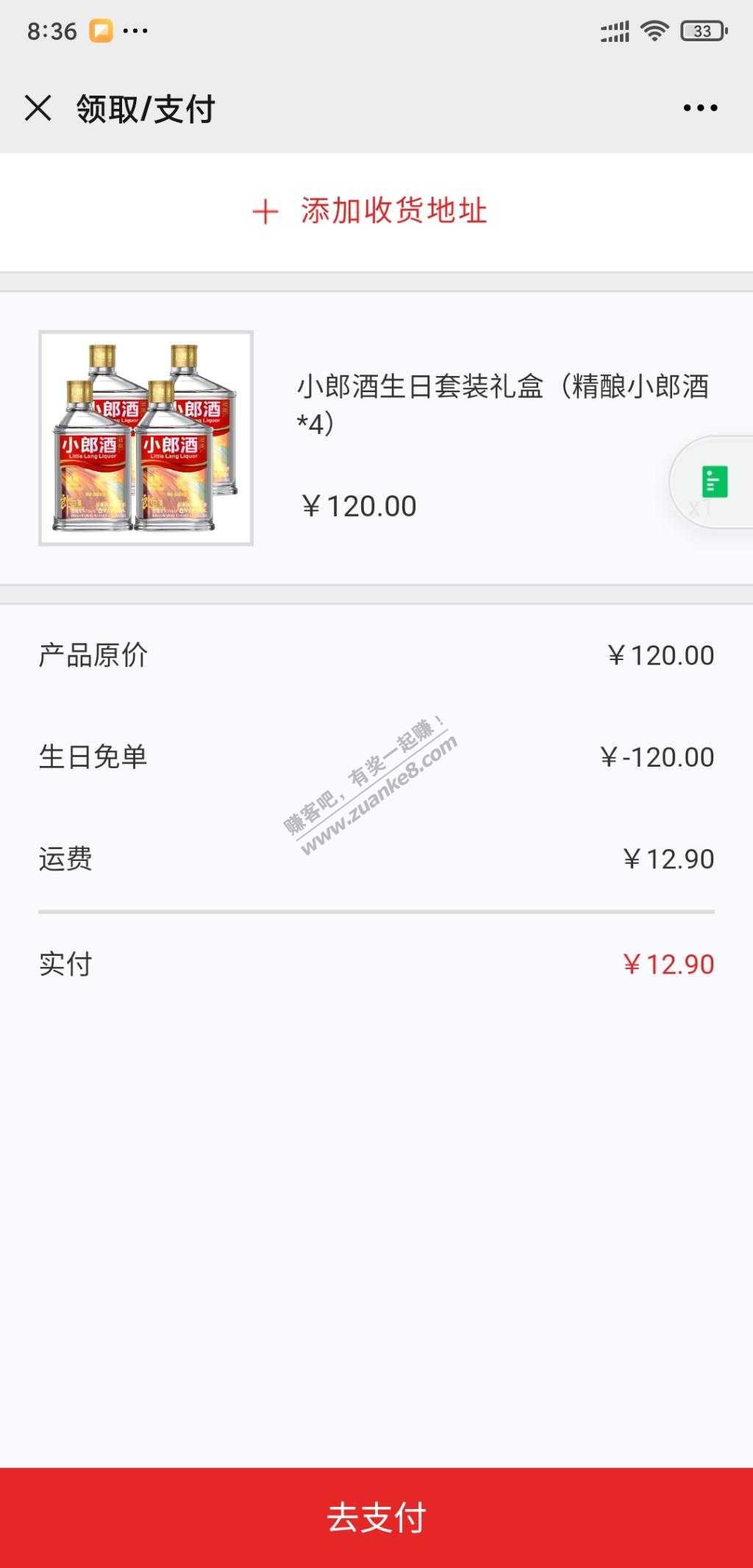 16、关注“小郎酒”公众号,在中间菜单栏“爆款活动”-“生日赠酒”,12.9购买4小瓶郎酒(需要扫描shen/份证正面信息,但可以遮住头像)