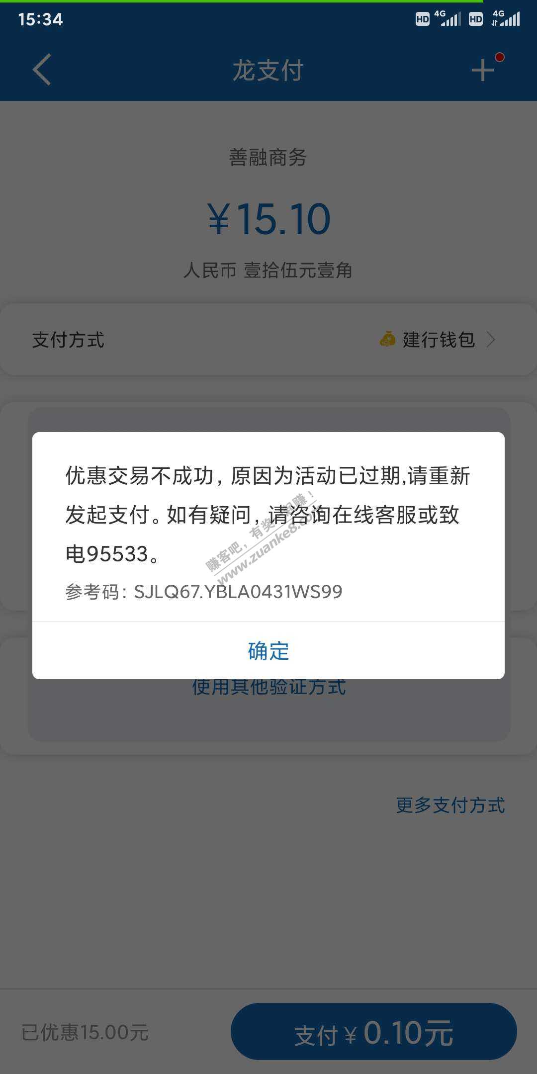 建行APP直接扫码下单,选龙支付后出优惠。