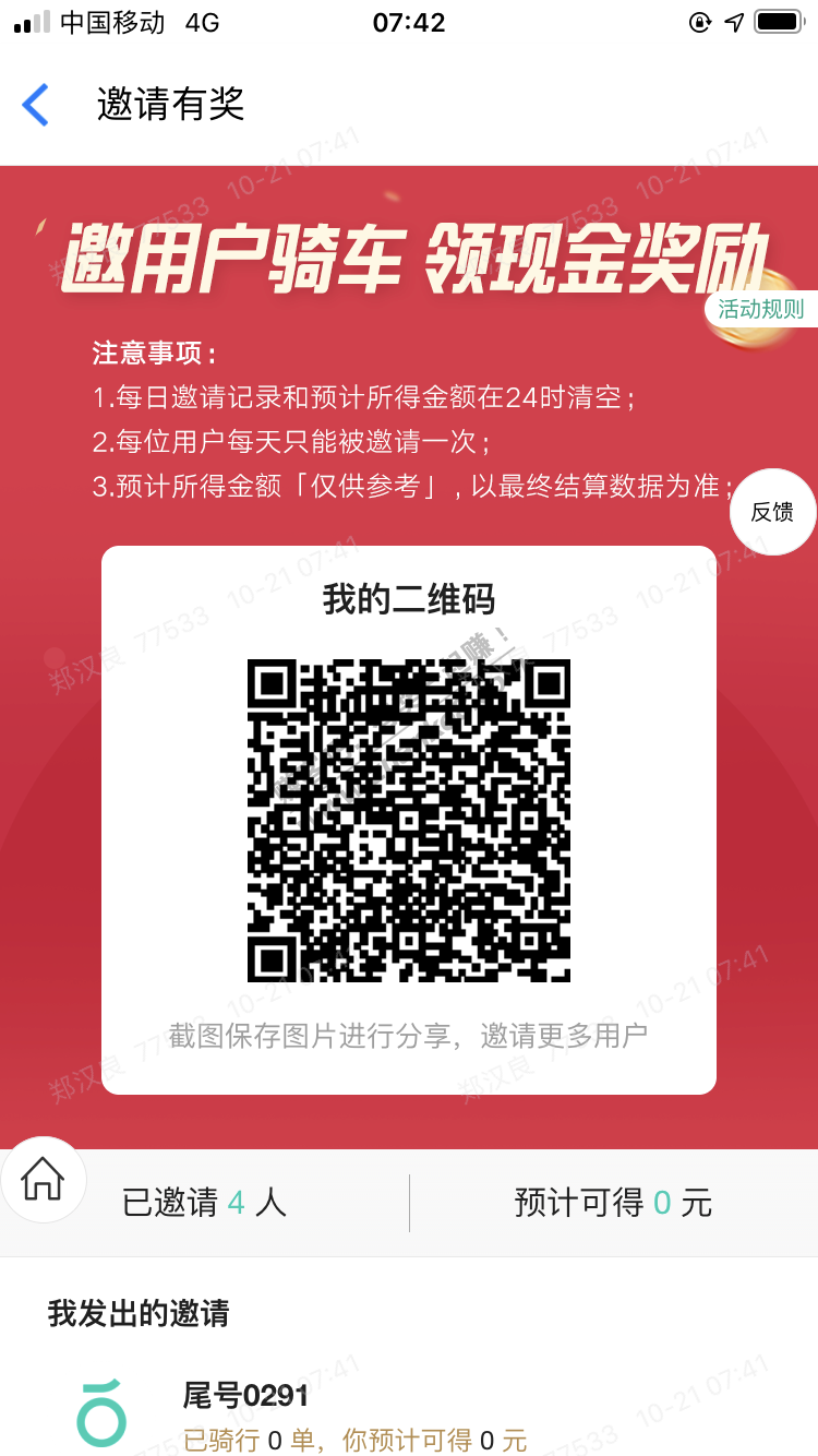 10月21号到25号骑行返现金,骑行卡低至0.6折,畅骑周卡才1.5元。23号全天更是免费骑。扫二维码骑行快乐一整天,每一单要骑2-3分钟,每天扫二维码一次,优惠多多,奖品多多,一天多骑行几次,红包更多,领到手软。赶紧骑着青桔街兔好上班,一边骑一边红包领不停[红包][红包][红包][红包][红包][红包]
