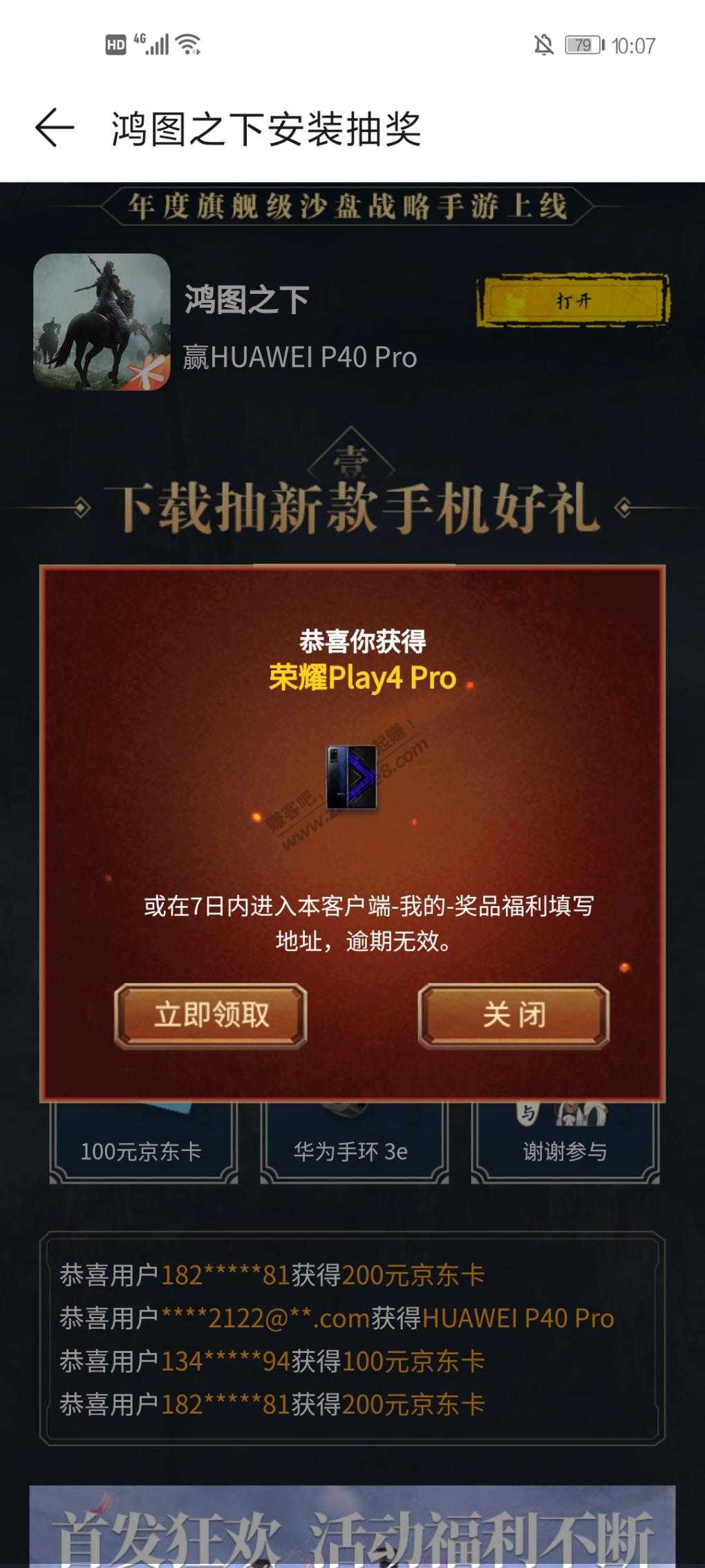 华为手机抽奖中了个荣耀手机