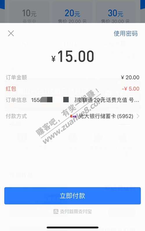 光大和平安-5,速度,话费秒到,我只能充20,也许有的地区可以充10,好心人加个果吧