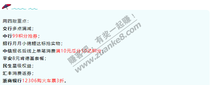 周四敲重点:交行多点满减;