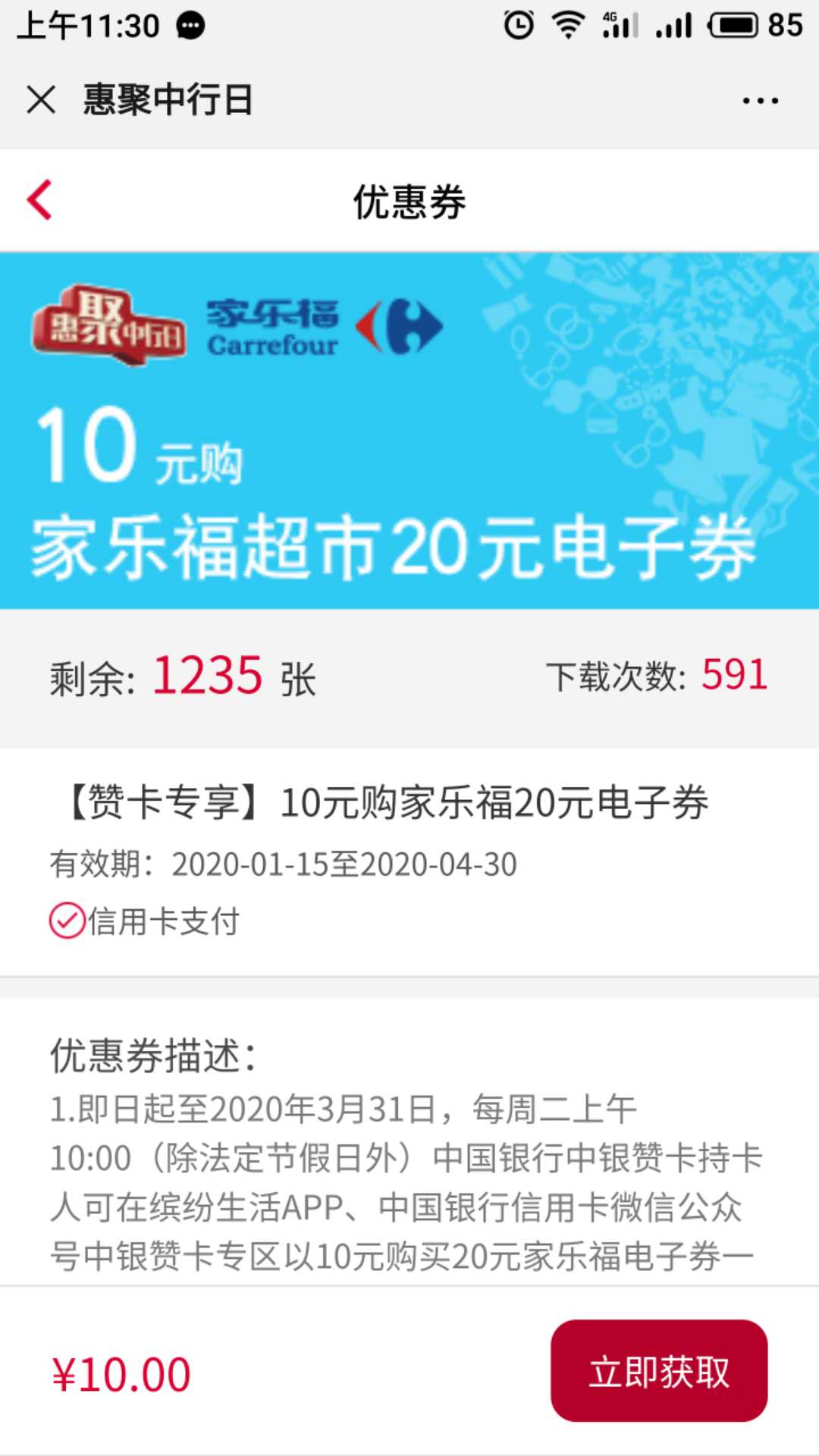 赞卡 5折家乐福 还有