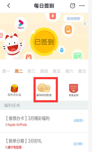 路径,掌上-我的-签到-赢666还款金